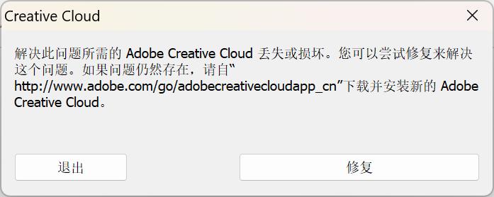 出现“解决此问题所需的 Adobe Creative Cloud 丢失或损坏”弹窗